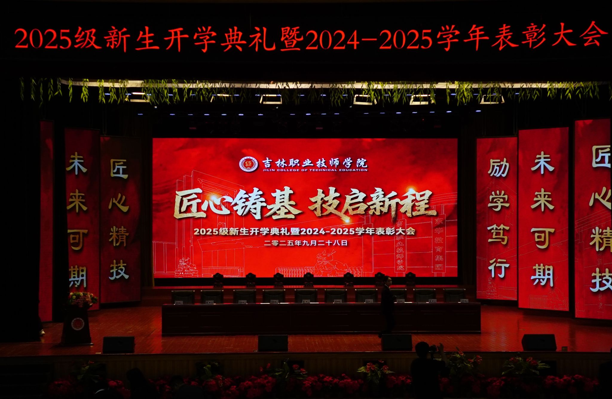 金秋送爽,丹桂飘香。9月28日下午,吉林职业技师学院2025级新生开学典礼暨2024-2025学年表彰大会在东鳌国际会议中心隆重举行。