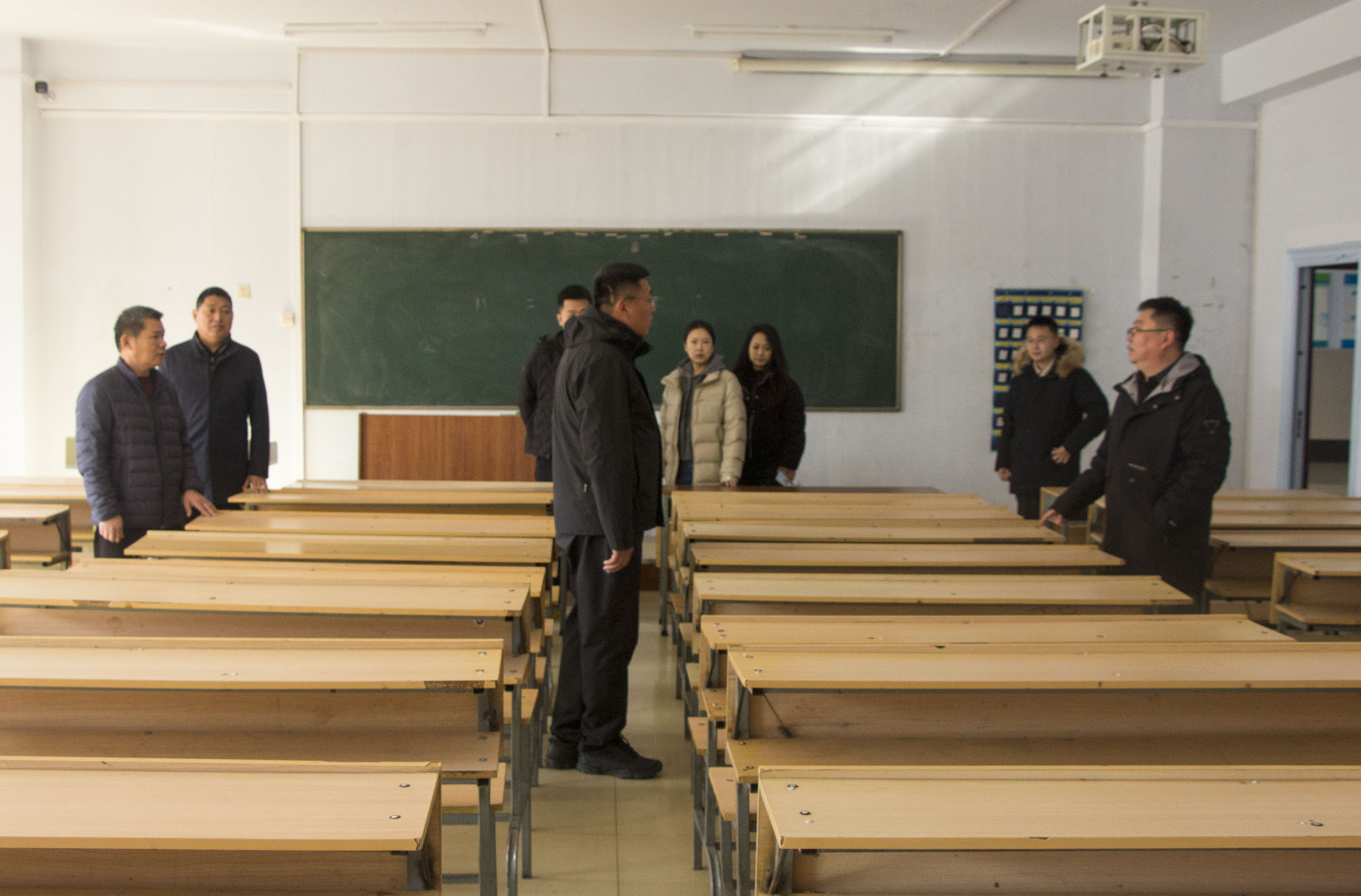 在教学楼,巡查组重点检查了教室多媒体设备、课桌椅配套、照明通风等教学设施运行情况,详细询问新学期课程安排、教师备课等准备工作。李新刚副院长强调,教学质量是学院发展的核心,要严把教学准备关,确保教学设施完好、教学安排有序,各系部要强化教学过程管理,及时排查解决教学中出现的问题,为师生营造优质高效的教学环境。