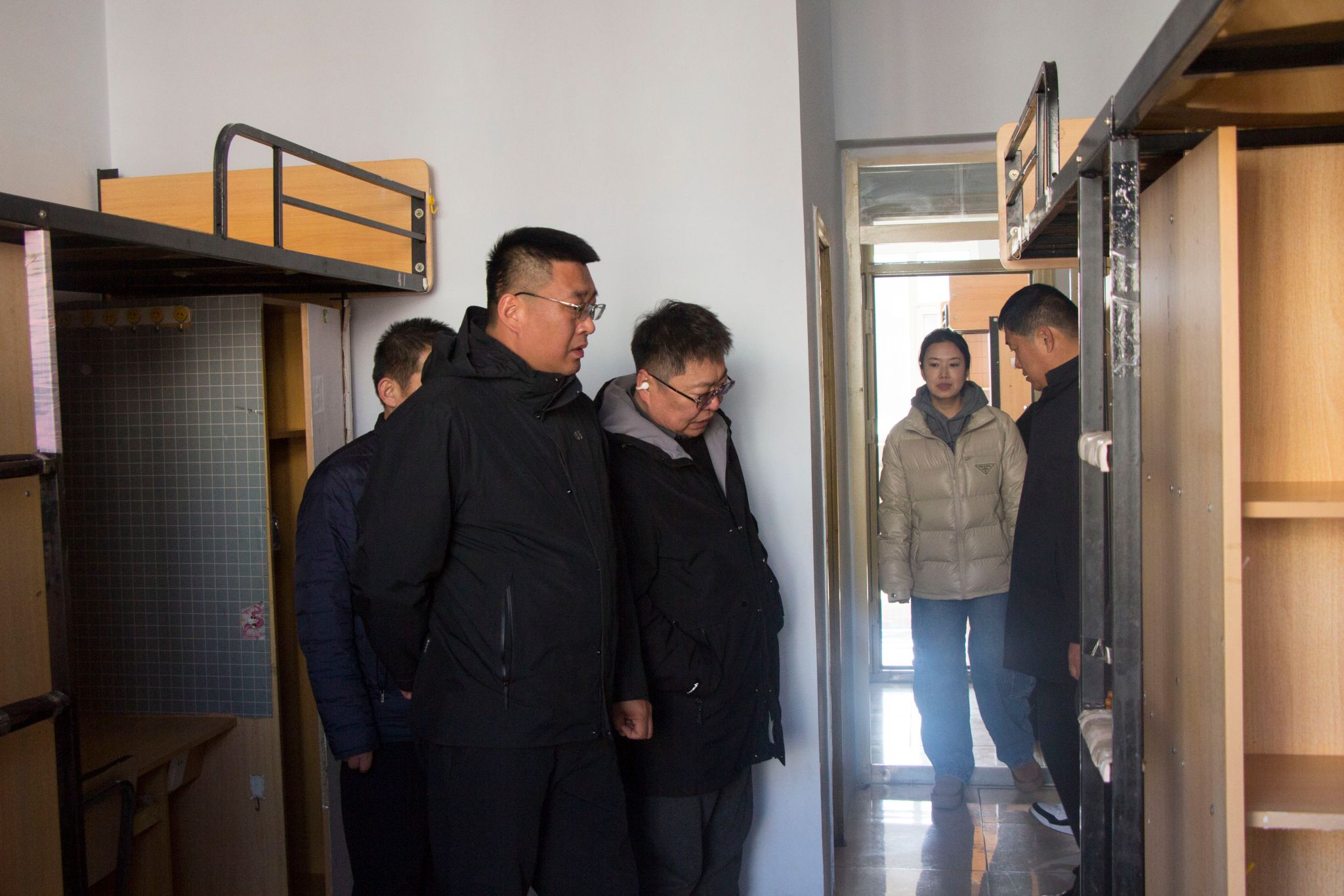 在学生宿舍,巡查组逐一排查了宿舍用电安全、消防通道畅通情况,仔细检查了门窗、插座、应急照明等设施完好度。王东红书记强调,学生宿舍是校园安全的重要阵地,要常态化开展安全隐患排查,重点防范违规用电、消防堵塞等风险,同时要贴心做好学生服务保障,及时回应解决学生实际困难,营造安全、整洁、温馨的住宿环境。