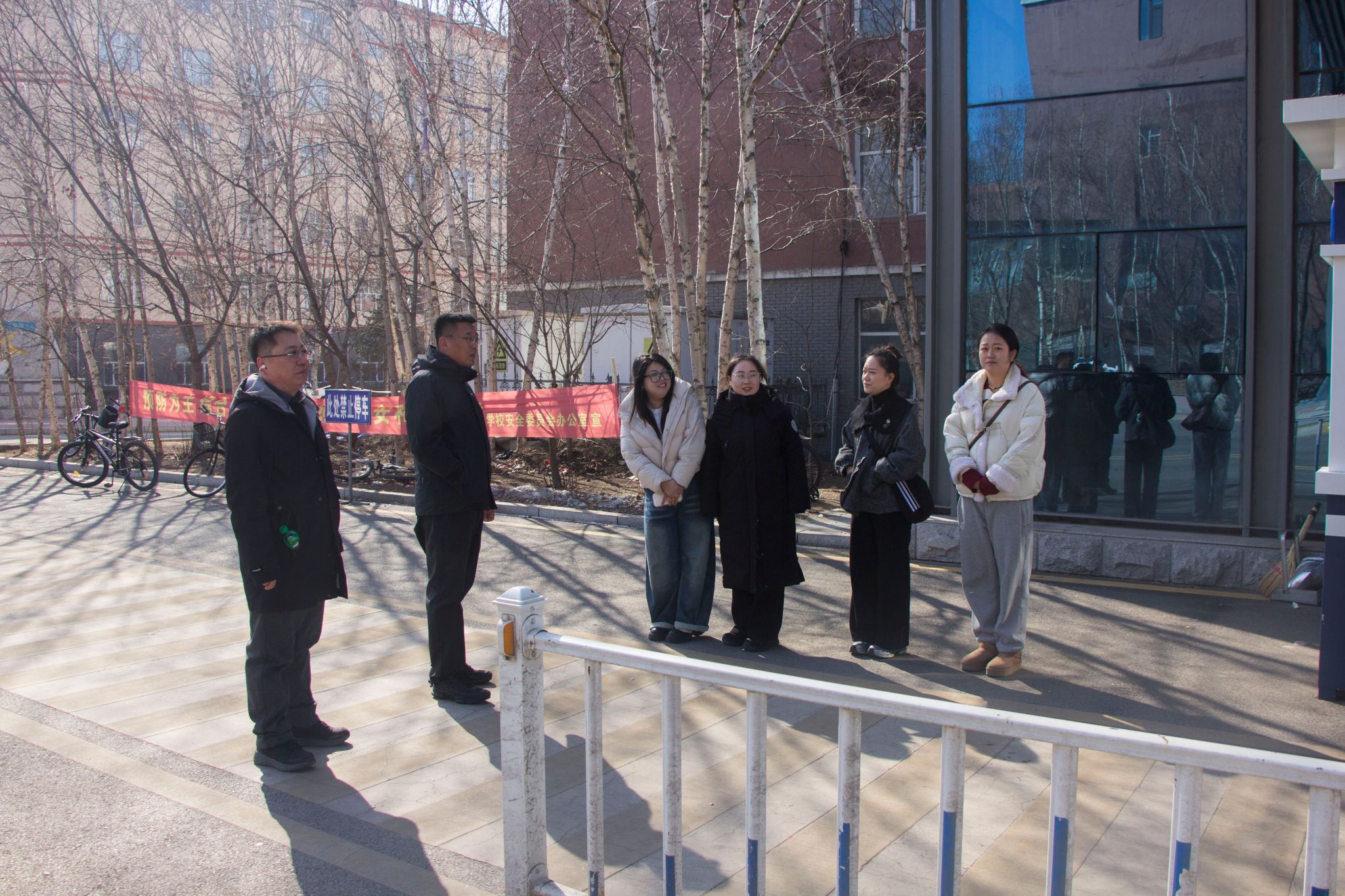 在我校北门,巡查组检查了人员值守、入校身份核验、外来人员登记等制度落实情况,李新刚副院长要求,要严格落实常态化安保举措,强化入校查验流程,提升值守人员应急处置能力,筑牢校园安全“防火墙”,为师生出行安全保驾护航。