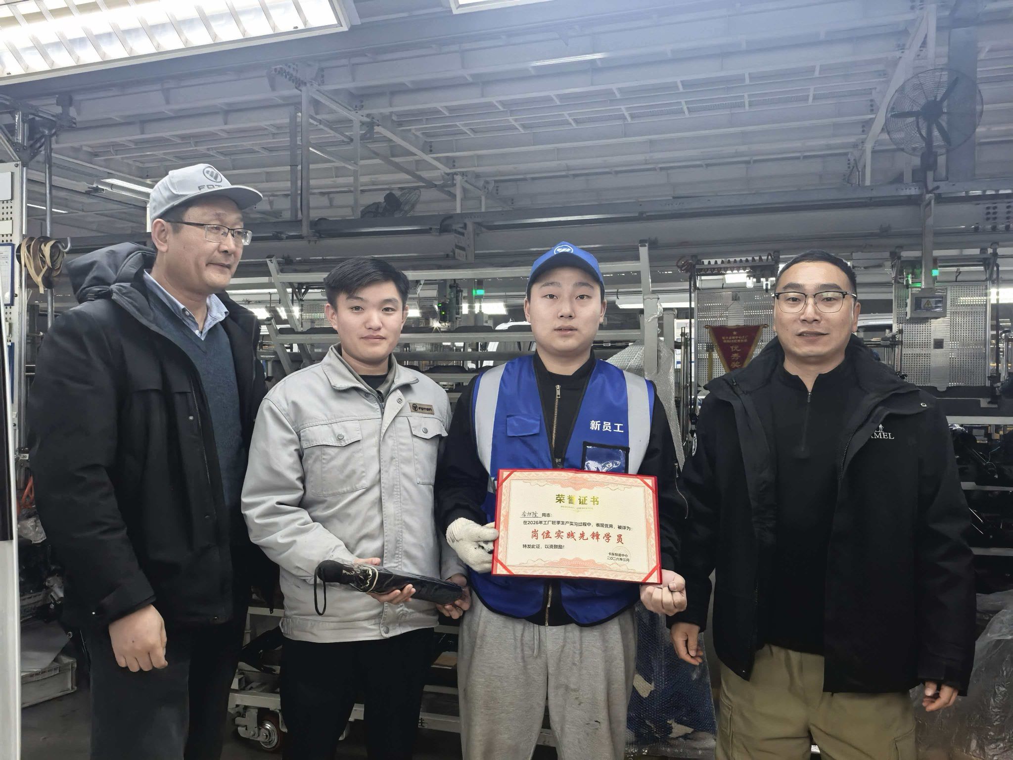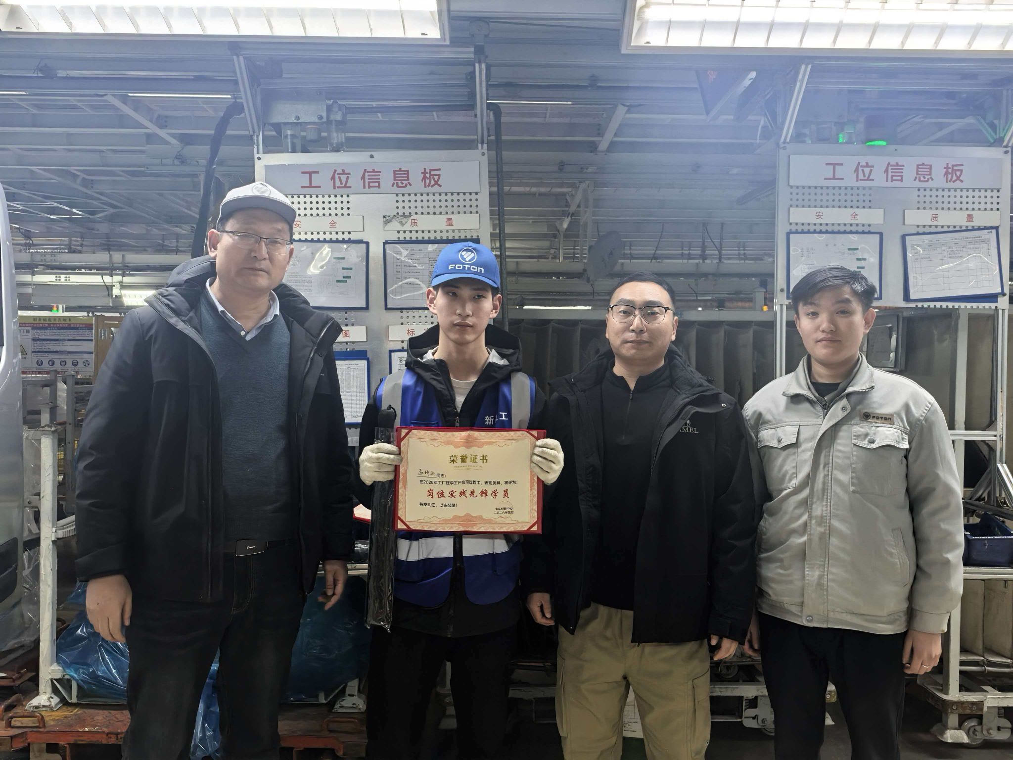 实习过程中,同学们态度严谨、勤奋务实,主动服从企业安排,认真学习岗位技能,积极参与生产流程。在新能源汽车生产岗位上,大家认真学习电池组装、电机调试等核心操作,熟悉新能源汽车智能化生产流程;在机械制造岗位上,专注钻研零件加工、设备调试等技能,了解机械加工工艺优化方法,深刻体会福田汽车“敢闯敢试、追求卓越”的企业精神与精益求精的工匠精神。面对实操中的难点问题,同学们主动向企业师傅请教,反复练习、总结经验,逐步实现了从“校园学子”到“职场新人”的转变,展现出智能技术系学子扎实的专业基础和良好的职业素养。