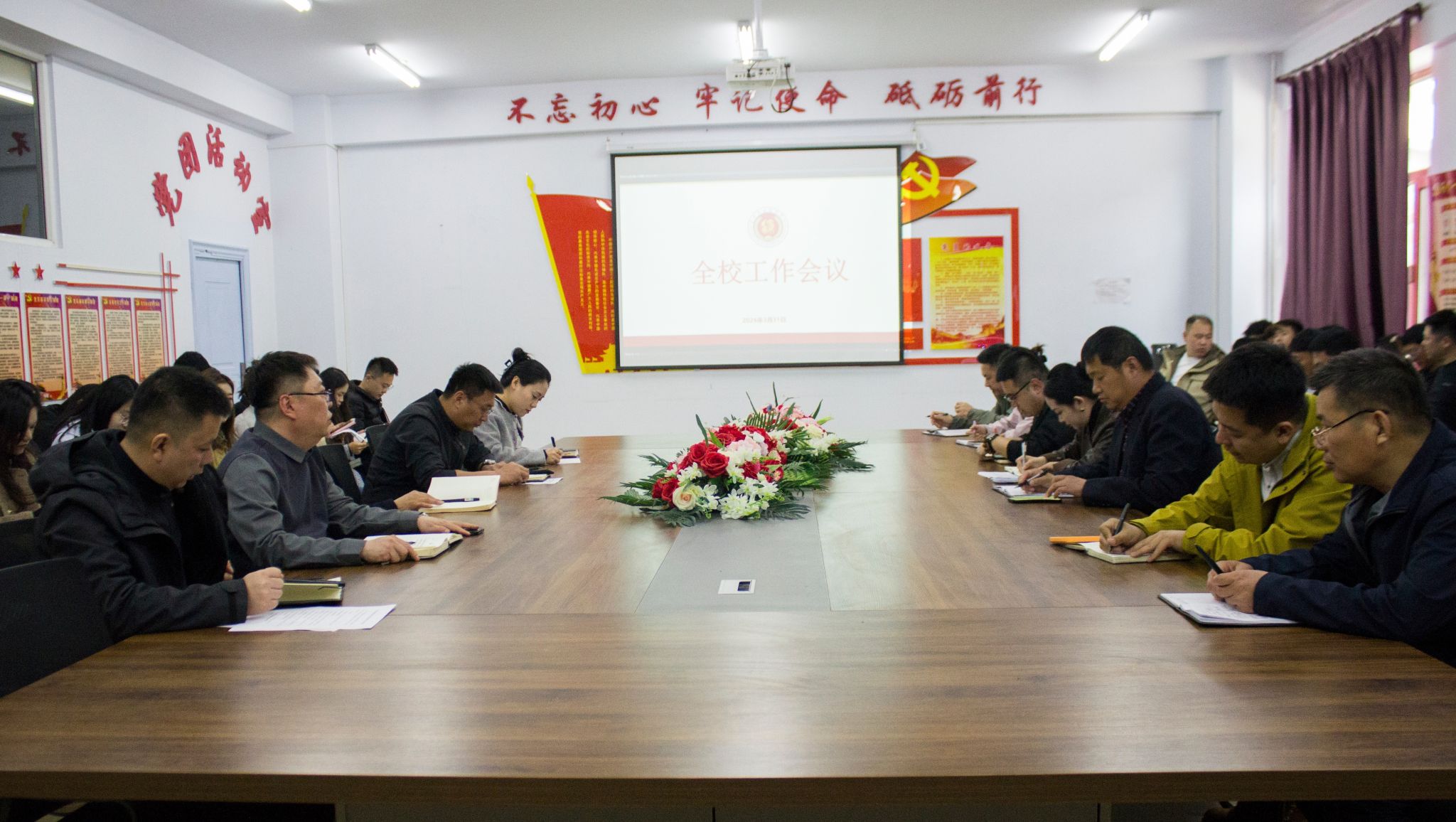 为进一步夯实教学管理基础,提升办学质量,强化生源建设,推动学校各项工作提质增效,我校于2026年3月31日召开全校工作会议。院长刘晓辉、党总支书记王东红、副院长李新刚、管清涛出席会议,全体教职工参加会议,会议由副院长李新刚主持。